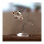 1 lámpara de sobremesa de hierro orientada hacia abajo en latón con difusor ondulado de cerámica con decoración floral roja; Los bordes están disponibles en varios colores (marrón, azul, verde, rojo o ámbar), ideales para crear un ambiente cálido y acogedor en estancias de tu hogar como el salón, la taberna o el desván.