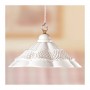 Lampe à suspension en céramique blanche avec plaque plissée et finition spaghetti. La coupelle de support peut être fixée aussi bien aux plafonds en maçonnerie qu'aux plafonds en bois.